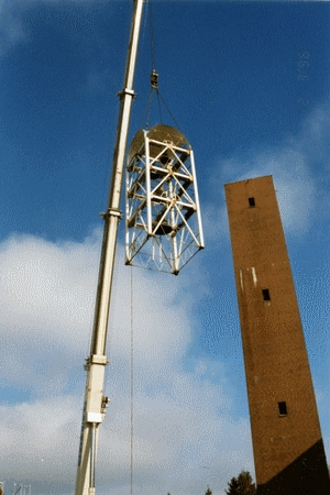 Zum ersten Mal seit zwei Jahren läuten sie wieder, die Glocken von St. Barbara. Wenn auch nur für einige Sekunden: Zwei Schläge, dann beginnt der Glockenturm zu schweben. Ein kleines Wunder, am Samstag um 10.45 Uhr. Zwei Jahre haben die Gemeindemitglieder auf dieses Ereignis gewartet, fleißig Mark um Mark gespart, bis sie 250 000 DM zusammen hatten: So teuer ist die Erneuerung der maroden Stahlkonstruktion, die die Glocken dort oben auf dem Klinkerturm hält. „Der größte Teil stammt aus eigenen Mitteln", ist Pfarrgemeinderatsvorsitzender Wolfgang Feldmann sichtlich stolz - der Verkauf von Stahl-Stücken als Briefbeschwerer soll die Kassen nochmal klingeln lassen. Eine Dorstener Spezialfirma wird den Turm in drei Monaten sanieren und mit einer „Gegenpendelschwingungskompensationsanlage" standfest machen. Zum großen Glocken-Gaudi vor der Kirche finden sich am Samstag dutzende Zuschauer ein: Um acht Uhr rollt der Kran heran, wenig später auch das Fassbier. Kaffee, Brötchen und Kuchen stärken die Zuschauer; ein warmes Feuer taut die Finger wieder auf, die an Videokameras und Fotoapparaten festfrieren. Der Kran hoch oben in der Luft, der Trubel am Fuße des Turmes was für die Schaulustigen eine Sensation ist, ist für Ewald Blasius ein vertrautes Bild: „ 1954 wurde der Turmbau begonnen", erinnert sich der Dümptener - auch damals schwebte der Glockenstuhl am eisernen Haken. Ein bisschen aufgeregt wirkt er dann doch, als der Kranführer den Motor anwirft und das Seil sich strafft: Langsam schwebt das weiße Gerüst herunter. Zentimeter um Zentimeter nähert sich das Klang-Quartett Barbara, Maria, Michael und Josef dem Boden - zehn Tonnen wiegen die- vier Glocken samt Gerüst. Der Kranführer weiß, wie ein echtes Wunder auszusehen hat: Just in dem Augenblick, in dem ein Flugzeug über den blauen Himmel zieht und die Sonne hinter den weißen Watte-Wolken auftaucht, stoppt er die Talfahrt. Ein Raunen geht durch die Menge, Kameras klicken: „Ich hab's drauf", freut sich der ältere Herr links vorne. (hei) |