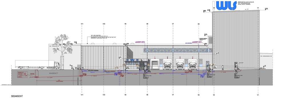 Anbau eines Cool-Docks und Errichtung von Büro- und Sozialräumen sowie von PKW- und LKW-Stellplätzen.