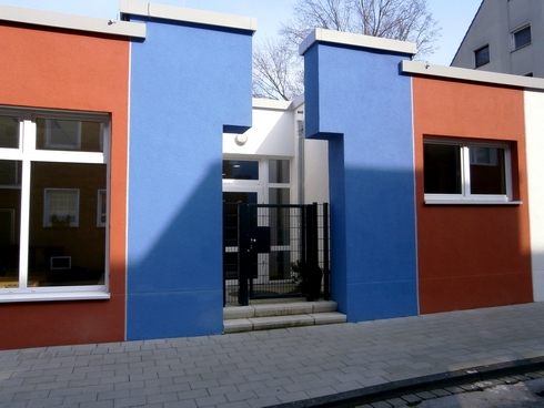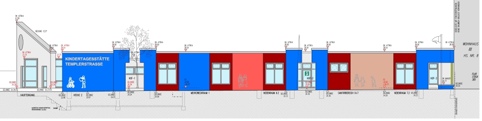 die Fassade längs der Templerstraße zu gliedern und die Tagesstätte insgesamt